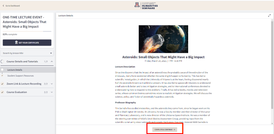 Once you have done this you should be at 100% completion and should be able to receive certificates.